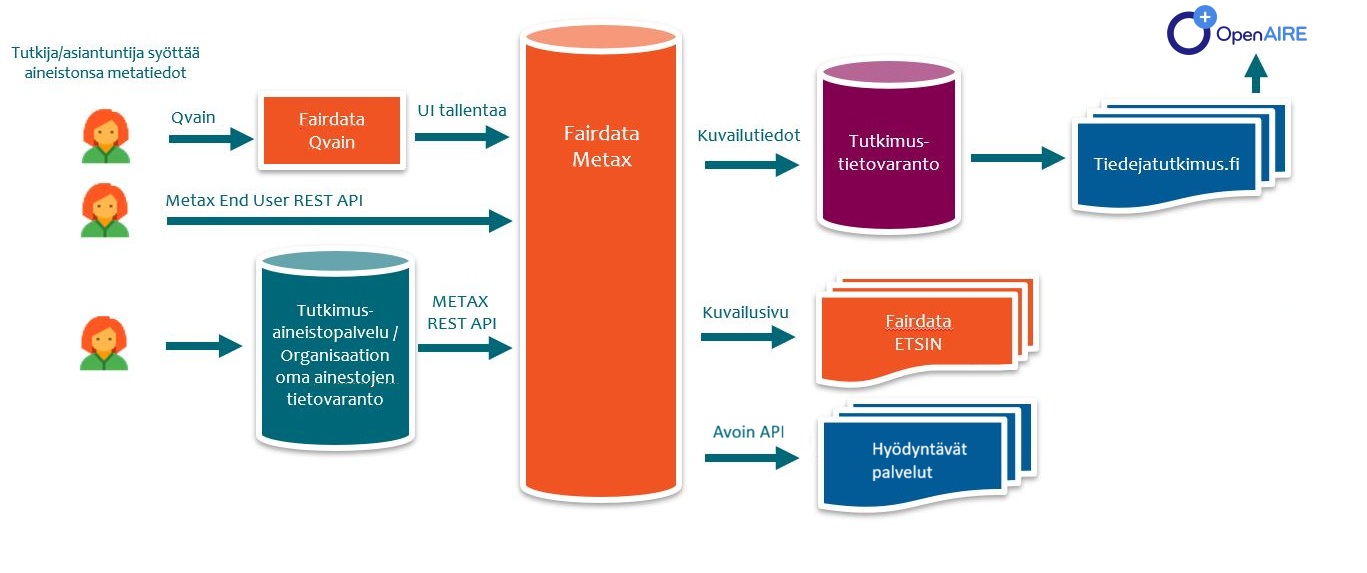 Metax palvelee myös tutkimustietovarantoa tietolähteenä (tarjoaa rajapinnan metatietoihin) ja se tarjoaa tutkimusorganisaatioille referenssidatoja.